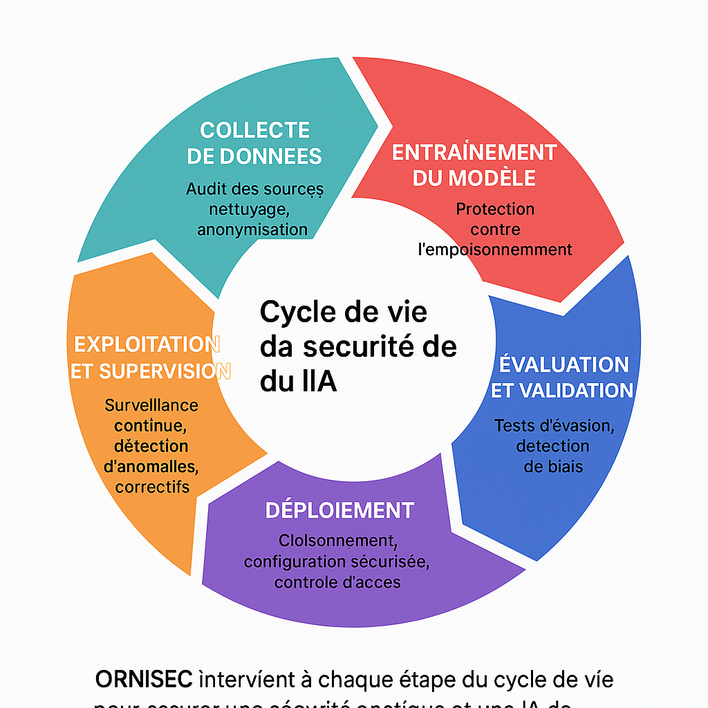 Chez ORNISEC, nous avons constaté que la plupart des organisations sous-estiment la complexité de la sécurisation de l’IA. Nos audits de cybersécurité IA permettent de détecter les risques invisibles : dépendance à des jeux de données externes non maîtrisés, mauvaise gestion des droits d’accès, configuration défaillante des environnements d’exécution, absence de surveillance post-déploiement. En appliquant une approche “sécurité dès la conception” (security by design), ORNISEC aide les entreprises à transformer l’IA en un levier de performance fiable, traçable et résilient.