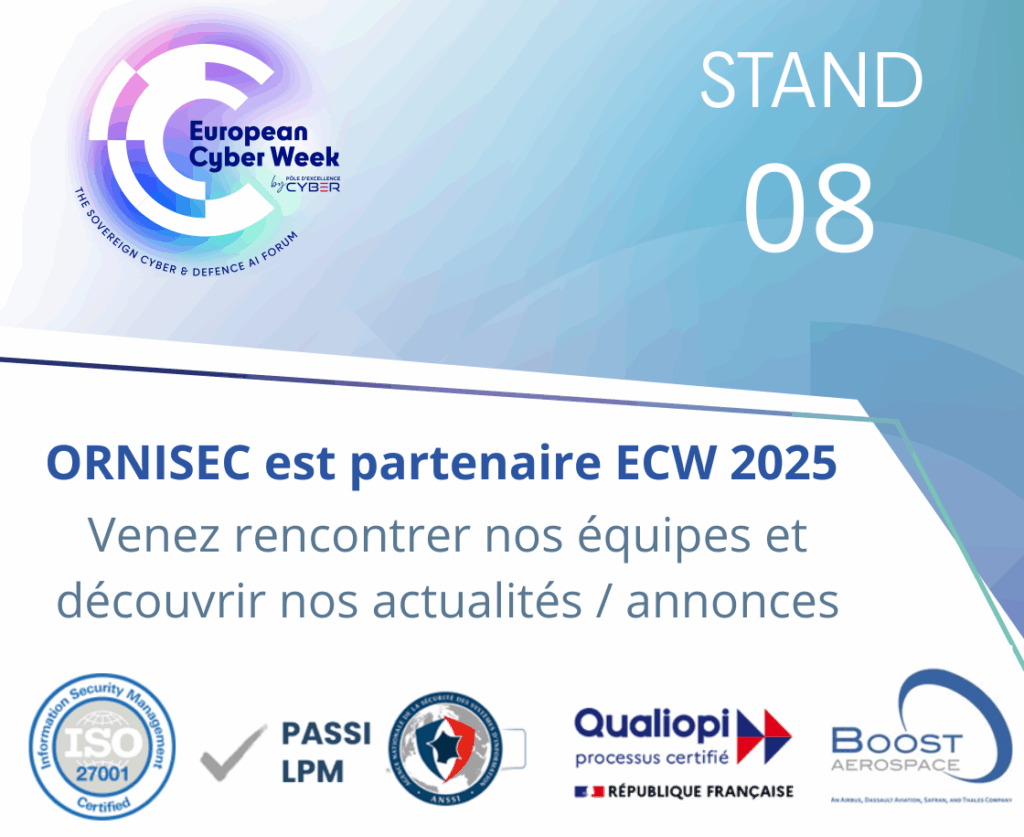 ORNISEC, cabinet PASSI expert en cybersécurité à Rennes, participera cette année à l’European Cyber Week (ECW) 2025, organisée par le Pôle d’excellence cyber (PEC) du 17 au 20 novembre. Cet événement européen majeur réunit les acteurs publics, privés et institutionnels autour des enjeux stratégiques de la cybersécurité, de la conformité NIS2 et de la résilience numérique.